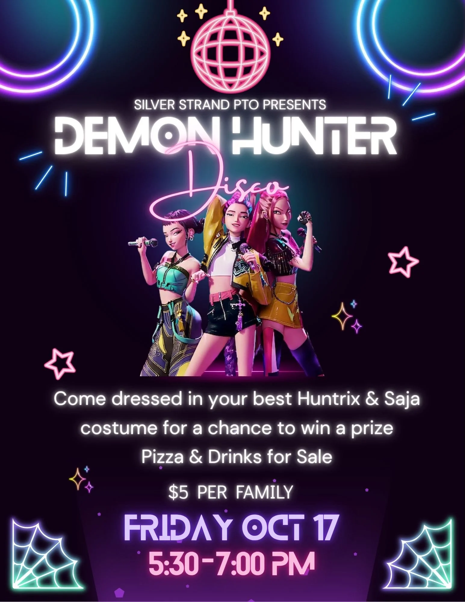 Get ready for a night of spooky fun at our annual Boo Bash Dance! Come dressed in your favorite costume and enjoy music, dancing, and festive treats with friends and family. It’s a fang-tastic way to celebrate the season—don’t miss out on this spooktacular PTO Family Fun Night!
